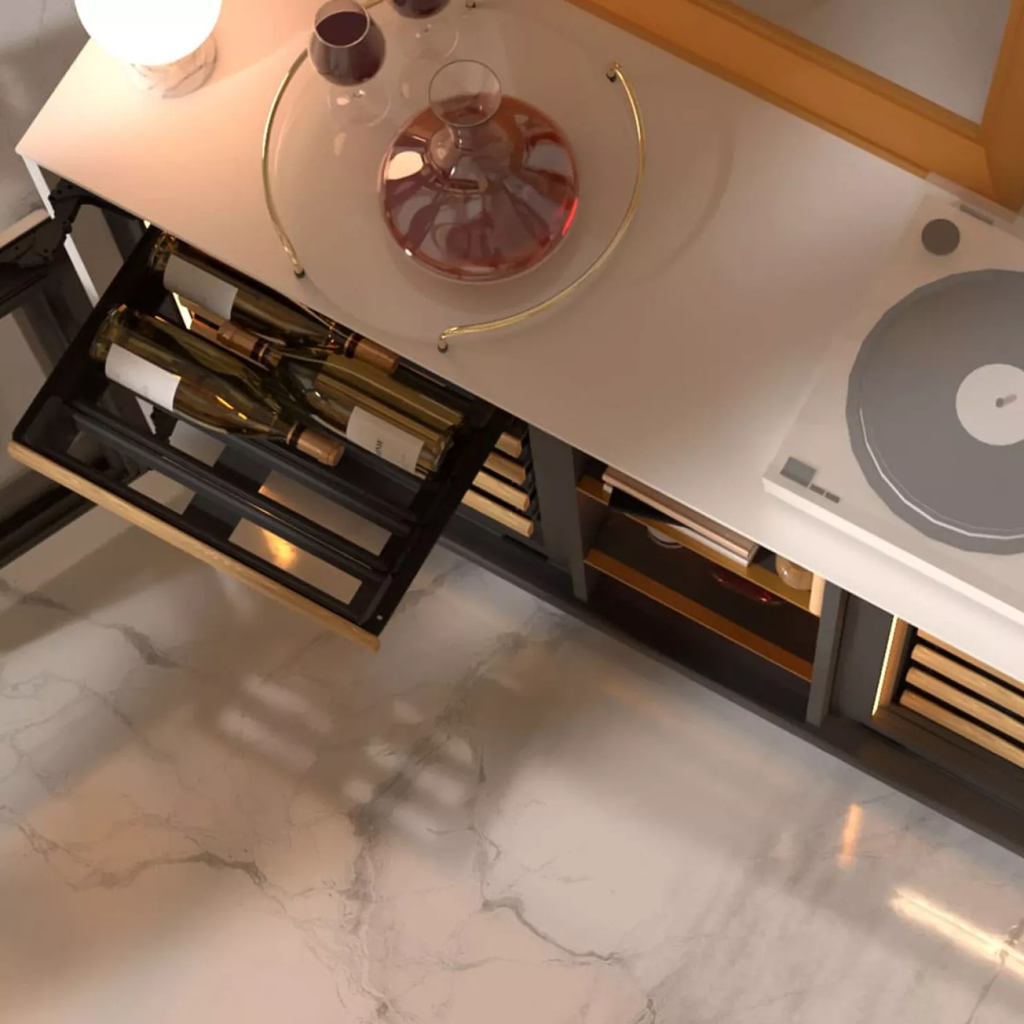 | Shelf Description: | Sliding shelves with full extension (ball bearings), equipped with removable bottle holders that can be adjusted thanks to a magnetic system for individual positioning. |